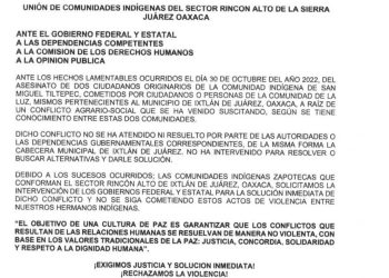 EL CONFLICTO HA DEJADO DOS MUERTOS Y UN HERIDO EN LA SIERRA NORTE DE OAXACA Pronunciamiento de la Unión de...