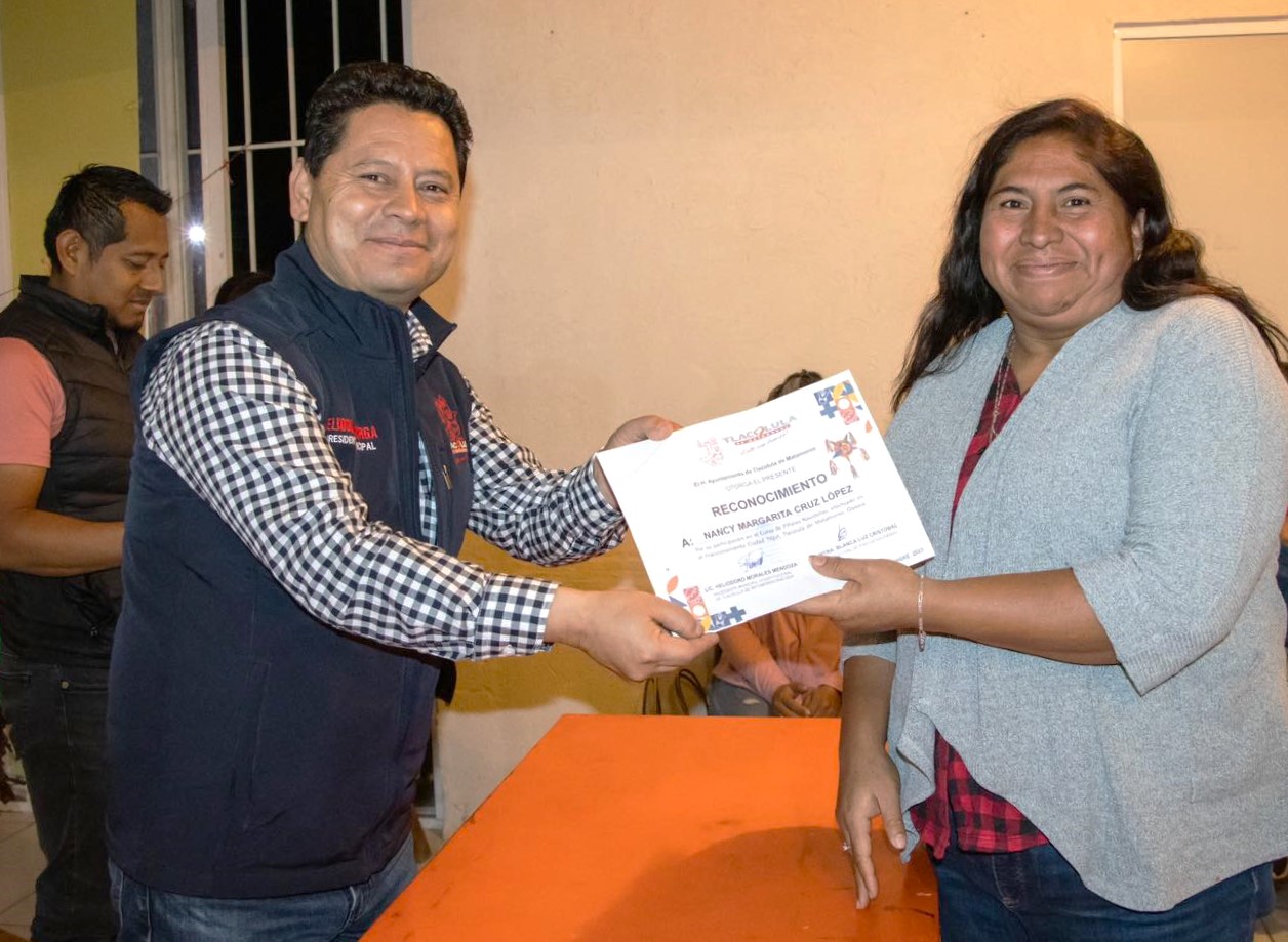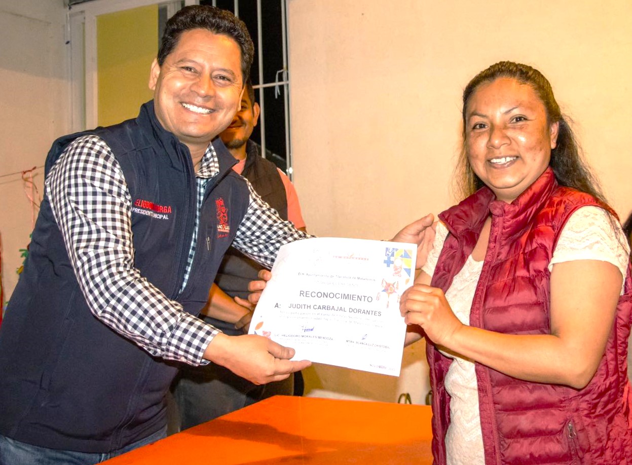 TLACOLULA DE MATAMOROS, Oaxaca, 30 de noviembre de 2023.- Para fomentar las habilidades artísticas y ofrecer a la ciudadanía, los conocimientos necesarios para emprender el oficio de la elaboración de piñatas, el presidente municipal, Heliodoro Morales Mendoza, hizo entrega de reconocimientos a los participantes en el taller “aprende a crear piñatas desde cero”.