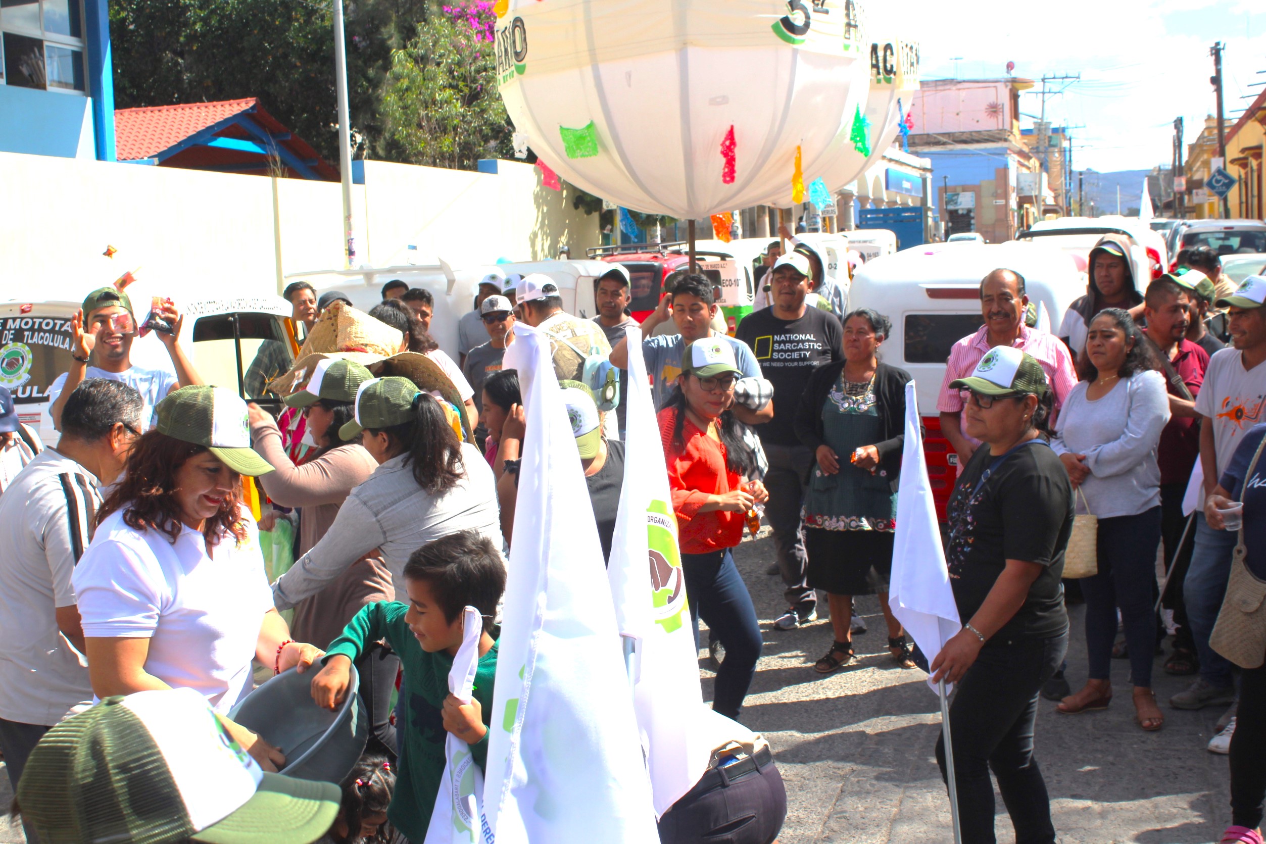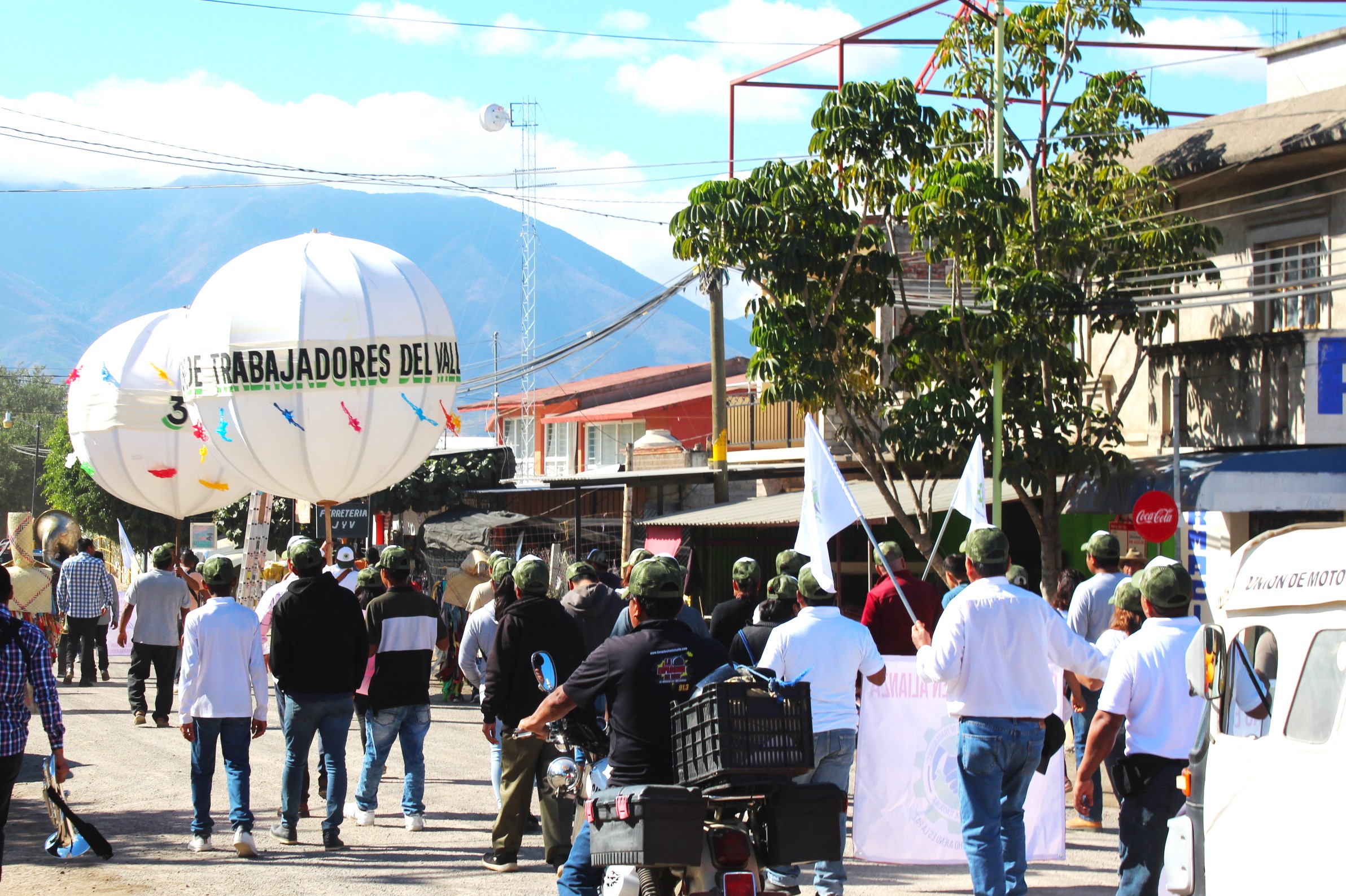 TLACOLULA DE MATAMOROS, Oaxaca, 16 de diciembre de 2023.-Con un desfile de organizaciones que partió del Hospital Rural # 36 y culminó en la av. 2 de abril a un costado del templo católico en el centro de la ciudad, la Alianza de Organizaciones de Trabajadores del Valle de Tlacolula, conmemoró el tercer aniversario de su fundación.