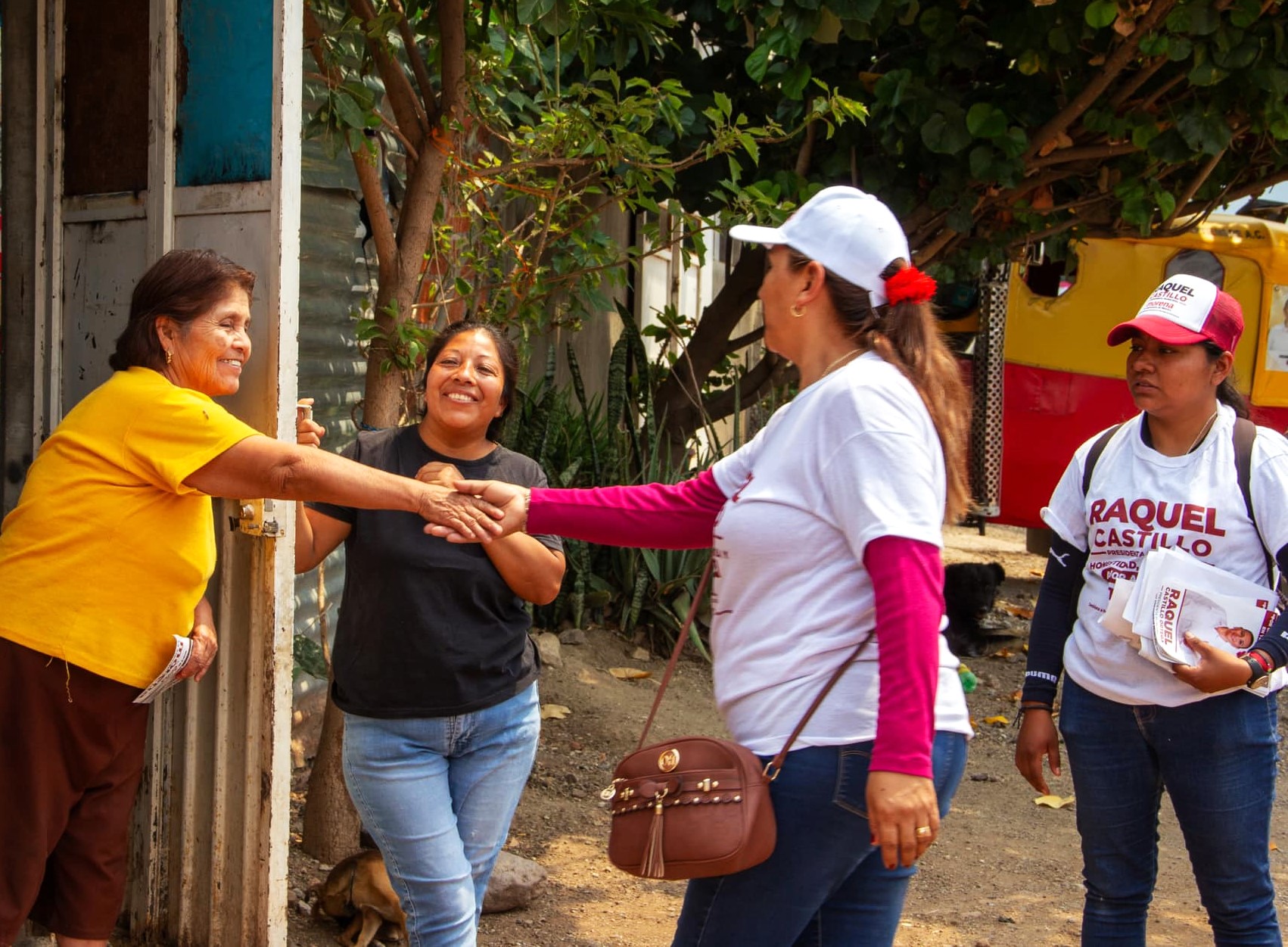 TLACOLULA DE MATAMOROS, 8 de mayo de 2024.-A poco más de tres semanas de las elecciones, Raquel Castillo Ortega, manifestó su beneplácito al reunirse con vecinos de la colonia “26 de septiembre”, tras la cálida bienvenida que le brindaron en este asentamiento humano, ubicado al noroeste del centro de la ciudad.