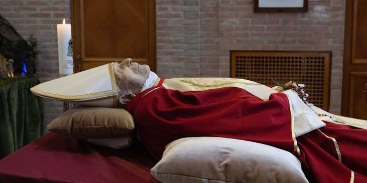 El cuerpo de Benedicto XVI, el papa emérito que murió el 31 de diciembre de 2022 a los 95 años, será expuesto a partir de este lunes 2 de enero en la Basílica de San Pedro para ser venerado por los creyentes.