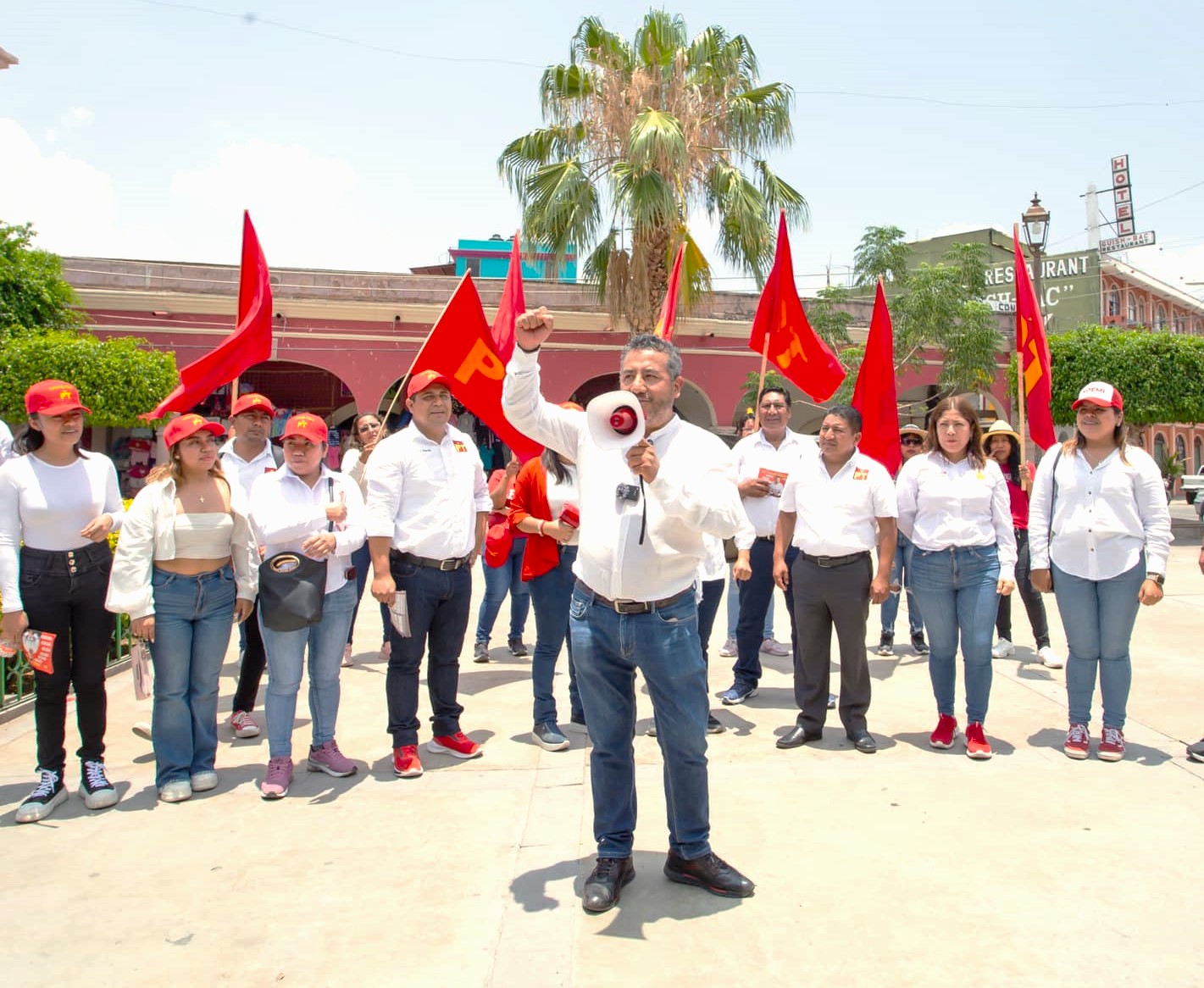 TLACOLULA DE MATAMOROS, Oaxaca, 1 de mayo de 2024.-Con un recorrido por las principales calles de la población, al lado de sus correligionarios, René Oscar Sánchez Chagoya (Rosch), di inicio a su campaña política en busca de la presidencia de Tlacolula d Matamoros, bajo el cobijo del Partido del Trabajo (PT).