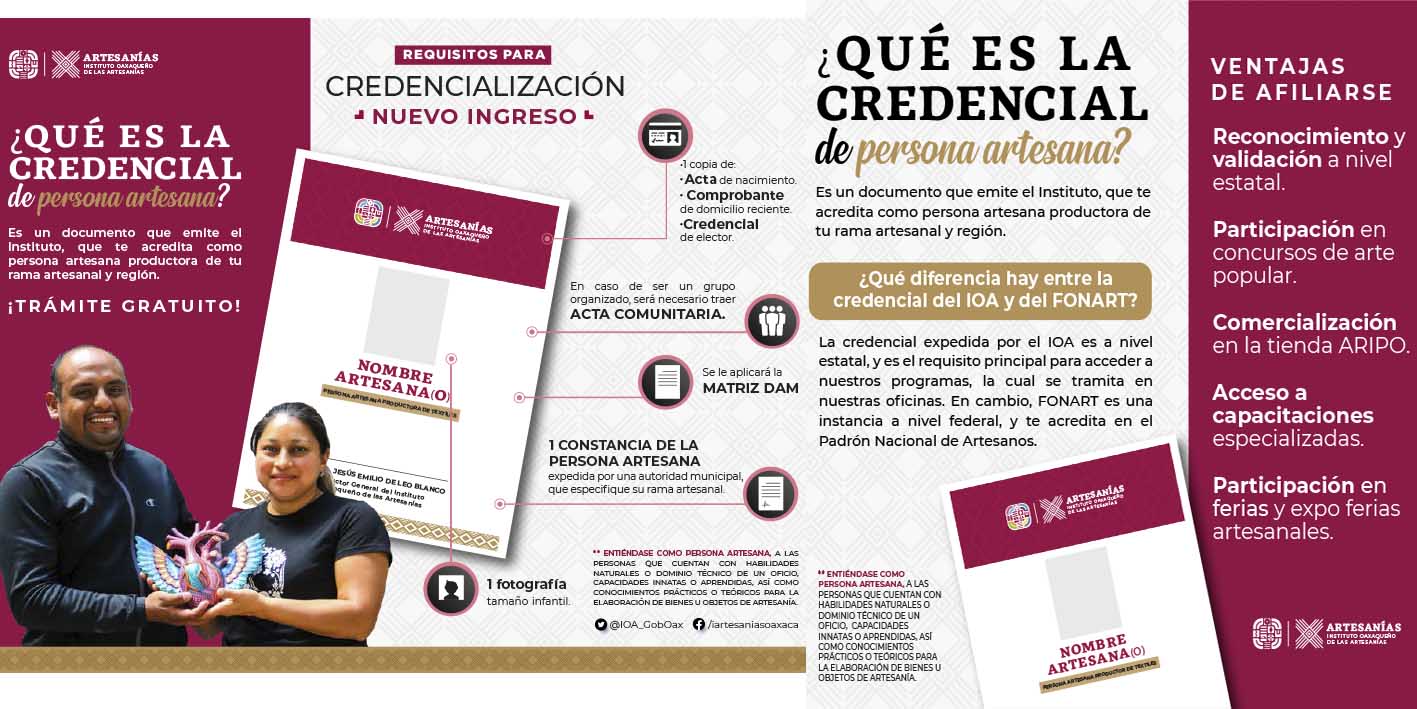 Al formar parte de este registro, las personas artesanas obtendrán una credencial expedida por el IOA, la cual les brindará el reconocimiento y validación a nivel estatal de su actividad, así como el acceso a distintos programas que brinda esta institución. También podrán participar en eventos y/o en enlaces con proyectos del Fondo Nacional para el Fomento de las Artesanías (Fonart).