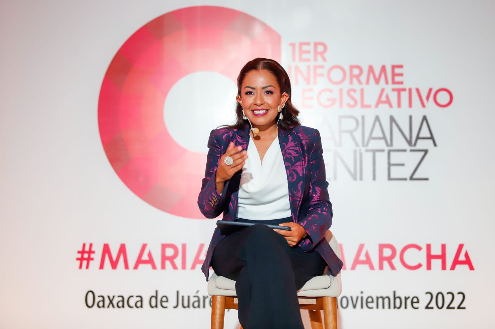 San Raymundo Jalpan, Oax. 21 de noviembre de 2022.- La diputada local Mariana Benítez Tiburcio, rindió su primer informe de actividades legislativas, mediante el cual destacó sus acciones parlamentarias a favor de las mujeres, la niñez y la juventud oaxaqueña.