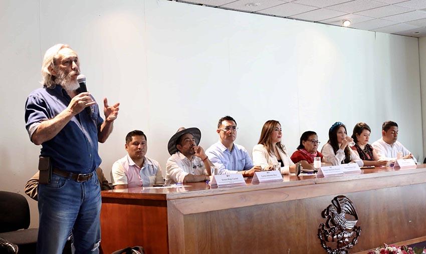En esta conferencia participaron las diputadas Haydee Reyes Soto, Leticia Collado Soto, Liz Hernández Matus y los diputados Víctor Raúl Hernández López, Noé Doroteo Castillejos, Sesul Bolaños y Horacio Sosa Villavicencio, así como Graco Rojo Curiel, Vocal y Vocero del Consejo Mexicano Regulador de la Calidad del Mezcal; Moisés Martínez Álvarez Presidente del Sistema Producto Maguey Oaxaca; Carlos Méndez Blas, Secretario de la Cámara Nacional de la Industria del Mezcal; por parte del Clúster de Mezcal Oaxaca estuvo Jorge Herrara García y Dena Chagoya, de Mujeres del Mezcal Capítulo Oaxaca.